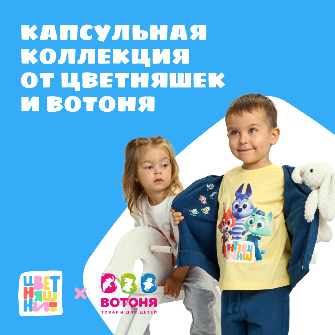 «ВОТОНЯ», известная своим широким ассортиментом качественных детских товаров станет эксклюзивным дистрибьютором коллекции. Palloncino обеспечит высокое качество и стильный дизайн одежды. Это партнерство значительно повысит узнаваемость мультсериала и позволит «Цветняшкам» стать еще ближе к семьям по всей стране.